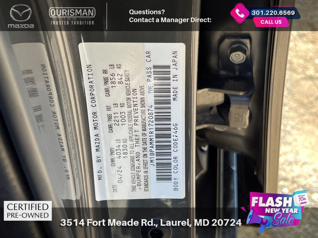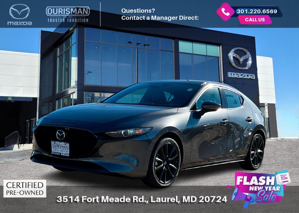 2024 Mazda Mazda3 2.5 S Premium Package Machine Gray Metallic FWD CARFAX One-Owner. Certified. MAZDA CERTIFIED, NAVIGATION/NAVI/NAV SYSTEM/GPS, SUNROOF/MOONROOF, BLUETOOTH/HANDS FREE, REAR VIEW CAMERA/BACKUP CAMERA, BLIND SPOT MONITORING SYSTEM, LANE KEEP ASSIST/LANE MITIGATION/ACTIVE LANE ASSIST, HEATED SEATS, APPLE CARPLAY/ANDROID AUTO, PRE-COLLISION SYSTEM/BRAKE SYSTEM, PREMIUM PACKAGE, LEATHER INTERIOR, ACTIVE CRUISE CONTROL/ADAPTIVE CRUISE CONTROL, No accidents or damage reported to CARFAX, 1 OWNER CARFAX, PREMIUM SURROUND SOUND SYSTEM, POWER ADJUSTABLE SEATS, ADVANCED KEYLESS ENTRY, REAR CROSS TRAFFIC ALERT. Buyers should take pride in knowing that Maryland has one of the most comprehensive state inspections in the country. Awards: * ALG Residual Value Awards, Residual Value Awards We know you have done a great deal of research, and you don't have time for hours of back-and-forth negotiations. At Ourisman Laurel Campus, your hassle-free purchase is backed by our extensive Market Research. Our No-Haggle pricing ensures you the best value on your vehicle-no games, no gimmicks. Unlike our competitors, we don't add any additional fees to the posted price or certification. You pay only the posted price of the vehicle plus Sales tax, your registration and a MD processing charge of $800Not required by law. Come see why Ourisman Mazda, Mitsubishi, Hyundai, Nissan in Laurel (Ourisman Laurel Campus) offers you the best value for your money! Serving Frederick, Rockville, Hagerstown, Potomac, Baltimore, Silver Spring, DC, Howard County, Washington County, Montgomery County, Anne Arundel. Maryland State Inspected with over 120 point inspection performed by a trained technician. Buyers should take pride in knowing that Maryland has one of the most comprehensive state inspections in the country.