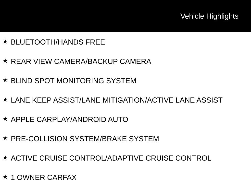 - Adaptive Cruise Control: Adaptive Cruise Control (ACC) with Low-Speed Follow