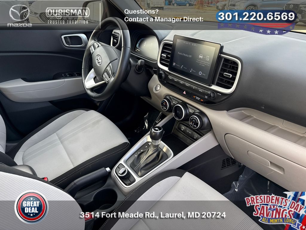 I absolutely move my new car. It’s almost perfect. Hyundai please add parking sensors and move the A/C blower control knob closer to the driver. I’ve already gotten use to parking sensors from my old car. They really help. The interior is roomy, uncomplicated, and very comfortable for its size and it is very stylish and good looking. I love that I do not have to bend my head down in order to enter the car unlike the Kona. My 6’ tall boyfriend liked sitting in the front and back passenger seats and had zero complaints. Cute, fun to drive, good power and pick up. Just the right size for city/suburban driving. Great mileage. Very comfortable driver’s seats or some who is 5’4”. Great value. Has most tech features I really want except missing parking sensors. I love the manual seats and prefer them over electric seats. My last four cars were mini’s. The interior feels very similar to the Mini Countryman - open. The Kona made me feel claustrophobic with its slanted windshield and lower roof which I had to bend my head down in order to get in to. Also the Kona’s rear doors were more narrow which made entry difficult. I really appreciate the upright, boxy style of the Venue. It’s very similar to the Mini Countryman but the Venue is weighs less and although they both have similar horsepower the Venue has a lot more pickup. The gears’ shifting is a little bit rough and probably the engine needs more gears in order to make the shifting more smooth and less noticeable. All around great looking and great value, comfortable and fun to own and drive. The Hyundai Venue is a real winner!!!!!! - 5.0