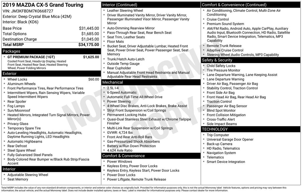 - Adaptive Cruise Control: Mazda Radar Cruise Control (MRCC)