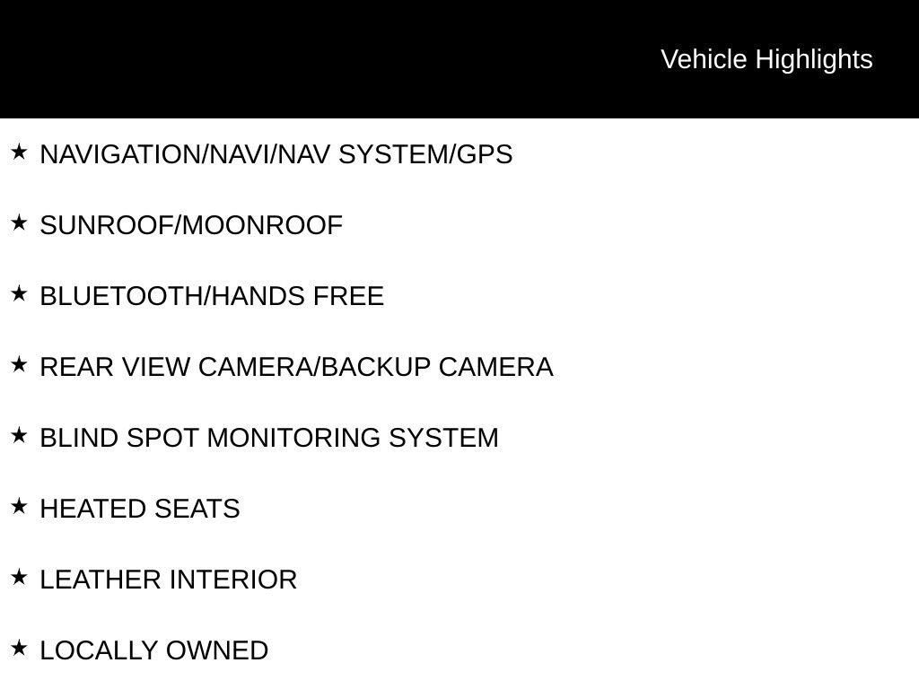 - Blind spot: Blind Spot Monitoring (BSM) warning