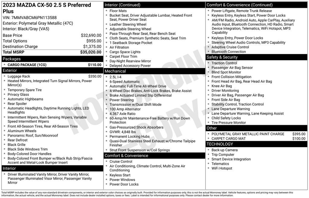 Used 2023 MazdaCX-50 2.5 S Preferred Plus Package
