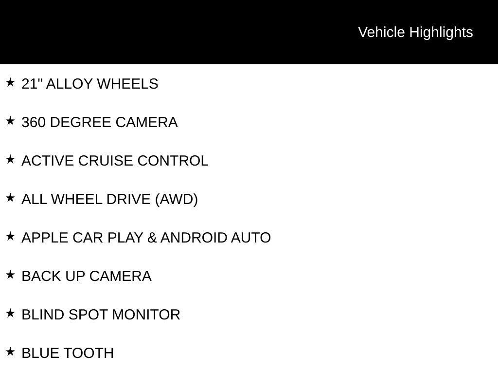 - 21" Alloy Wheels