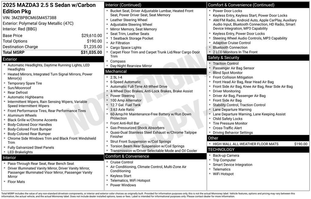 2025 Mazda Mazda3 Sedan 2.5 S Carbon Edition