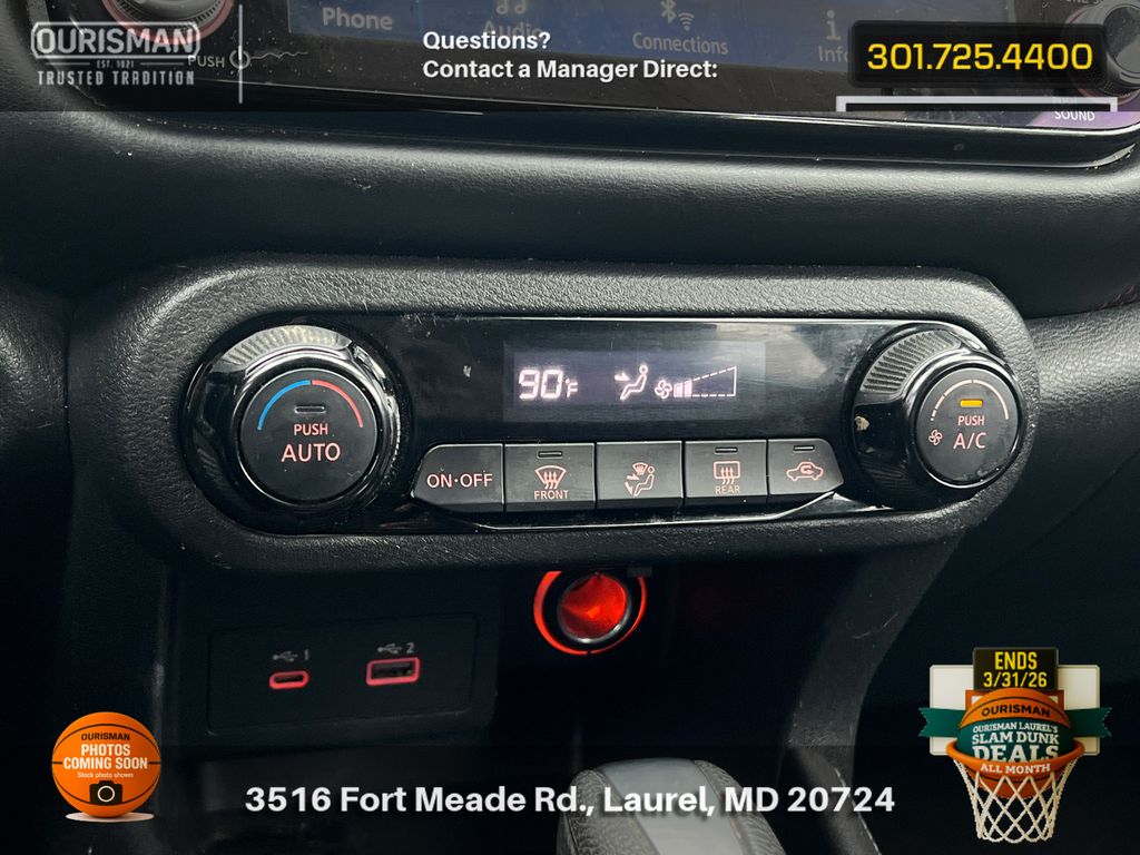 Stepping inside the Kicks SR, you'll be greeted by a spacious and well-appointed cabin that seamlessly combines style and functionality. The Cloth Seat Trim, Tilt and Telescoping Steering Wheel, and Rear Seat with Split-Folding capabilities ensure both comfort and versatility, while the Auto-Dimming Rearview Mirror and Compass add an extra touch of convenience.