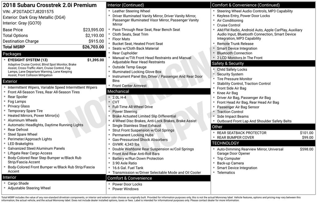 2018 Subaru Crosstrek 2.0i Premium with