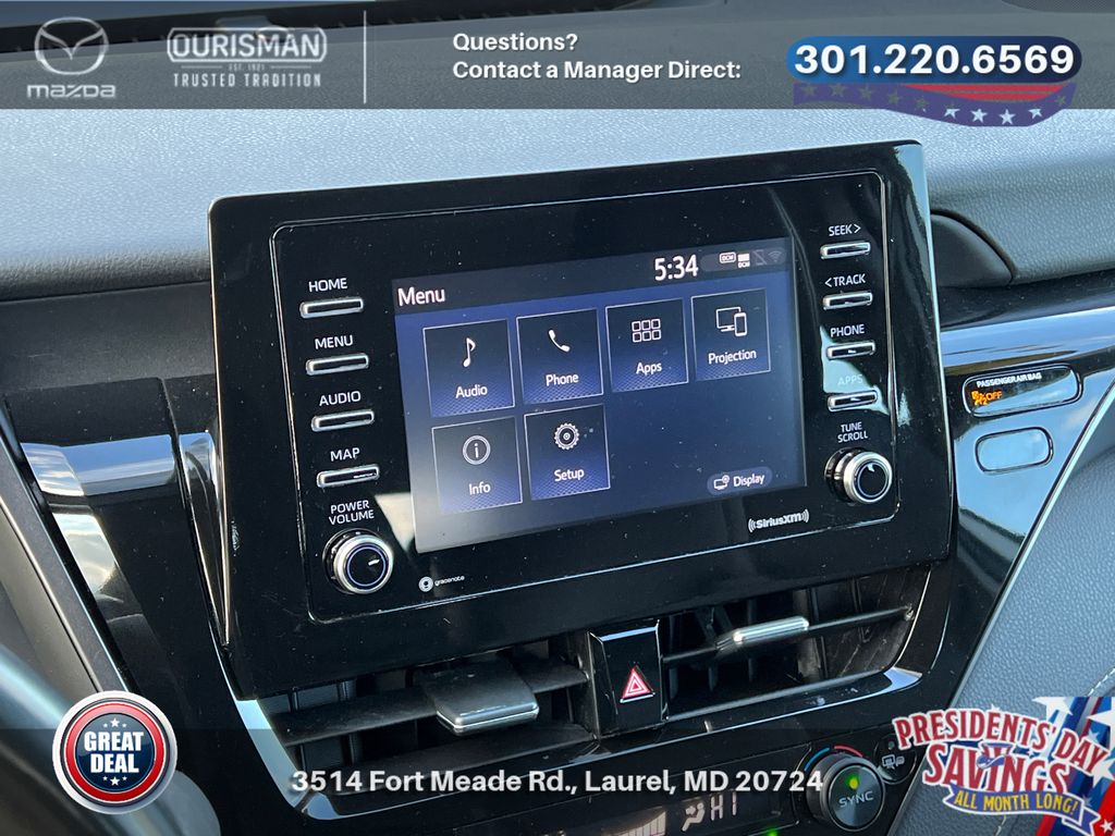 Safety is a top priority, and this Camry SE is equipped with a comprehensive suite of advanced driver-assistance technologies, including a pre-collision system, lane assist, and a blind spot monitor, ensuring your peace of mind on the road.