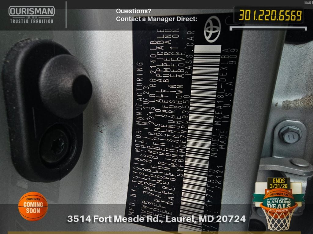 Availability- All Vehicles are subject to prior sale and may not be available. Check your dealer for specific vehicle availability. All financing is subject to Lender approval based upon Customer approved credit. Ourisman is not a Lender, but will assist Customer with Lender required submissions at Customer request.