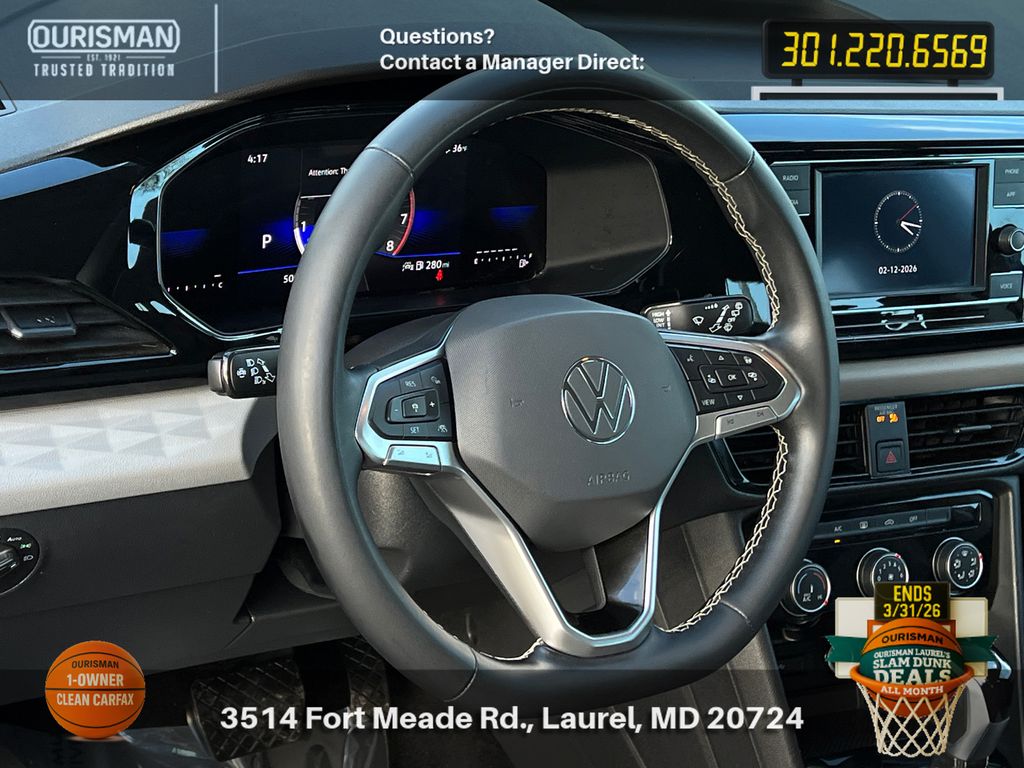 Highlighted by its impressive list of custom features, this Taos is equipped with Bluetooth connectivity, a Blind Spot Monitor, Lane Assist, a Pre-Collision System, a Backup Camera, Apple CarPlay, a Heated Steering Wheel, and Active Cruise Control. Additionally, it offers the convenience of Front-Wheel Drive (FWD) for confident handling in a variety of driving conditions.